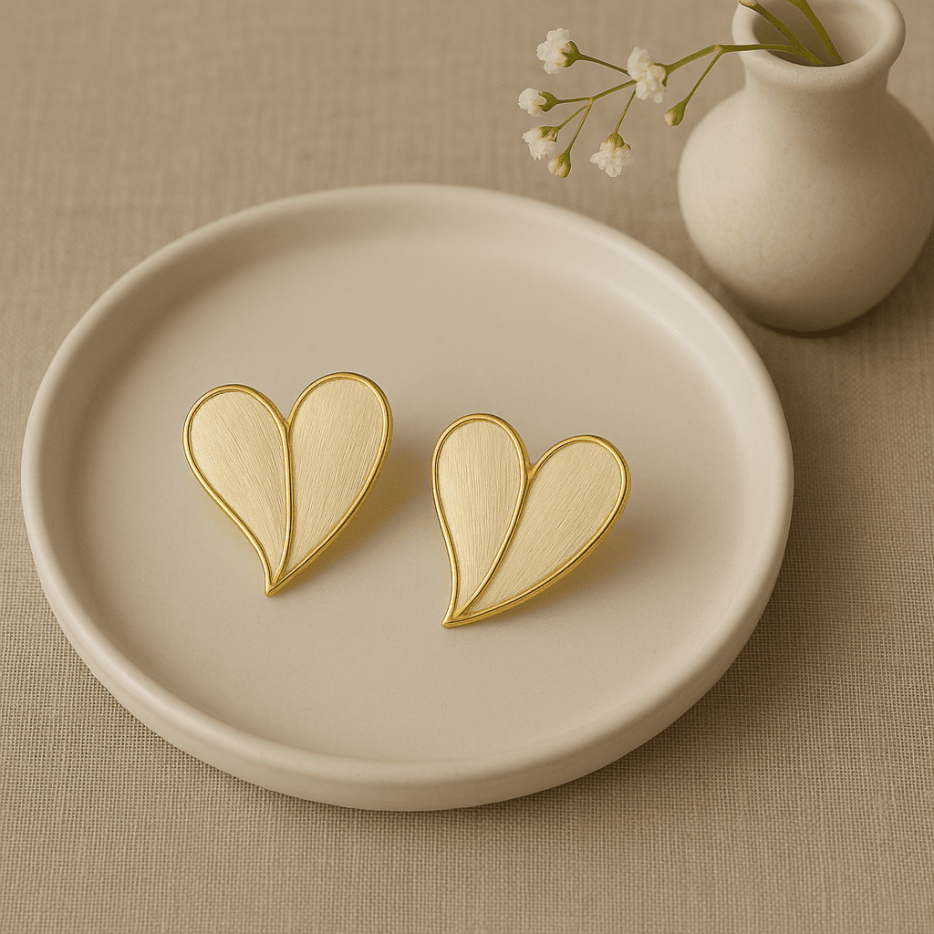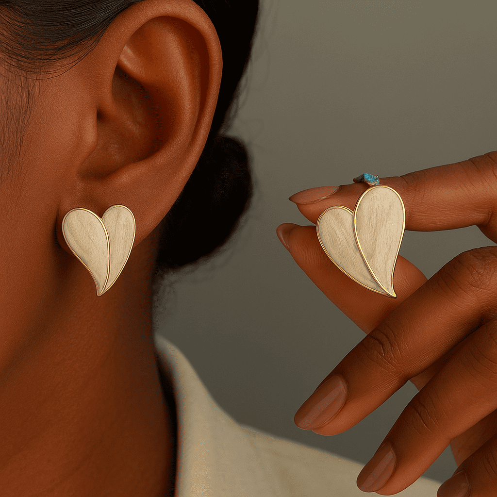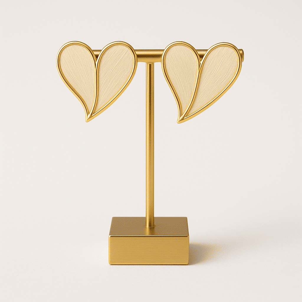Where elegance meets everyday charm. These heart-shaped beauties are crafted in a soft ivory enamel, hugged with a golden outline that adds just the right touch of luxe. Lightweight and gentle on the skin, they’re your go-to for subtle sophistication — whether it’s a brunch, a boardroom, or a special moment with someone special.
